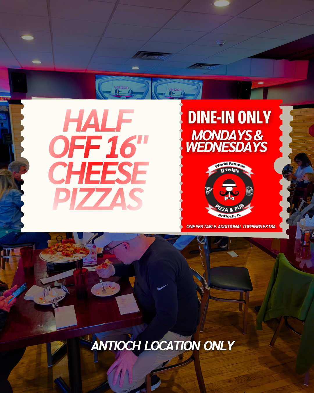 Half Off 16" Cheese Pizzas | Dine-in Only